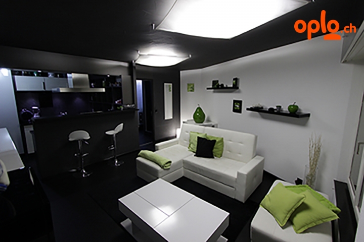 APPARTEMENT DE 2.5 + PIECES D'ENVIRON 80 M2 avec style moderne Suité à 2 min. de la gare et 5 min. de la place du midi 1650 .- / par mois CC et place de parc avec : 1 zone jour (cuisine - sejour) 1 salle de douche 1 chambre 1 salle a manger 1 hall d'entrée 1 terrasse exterieure aménagée 1 place de parc en sous-sol